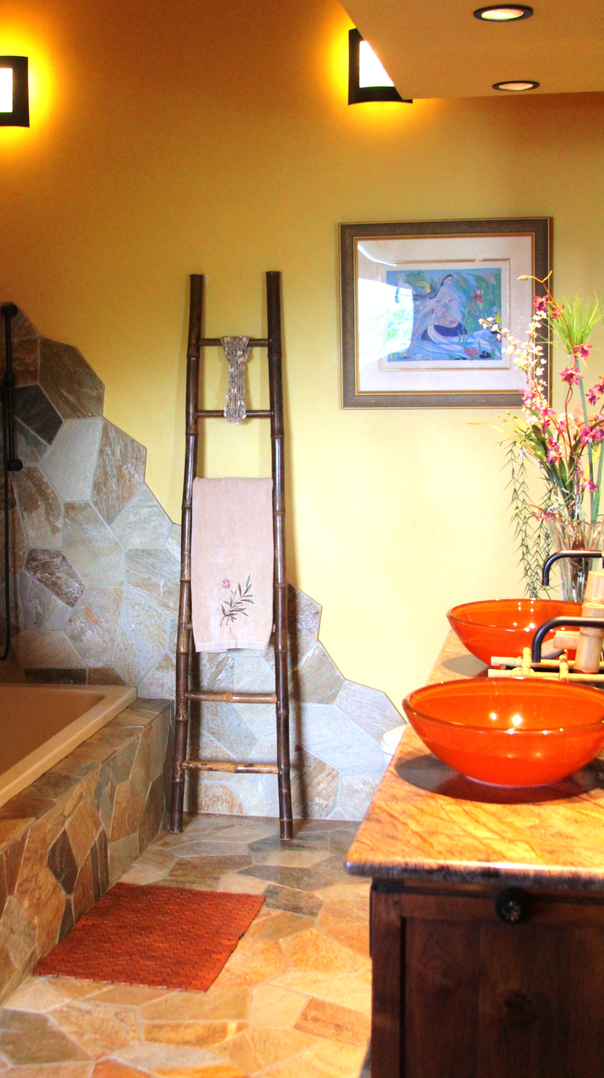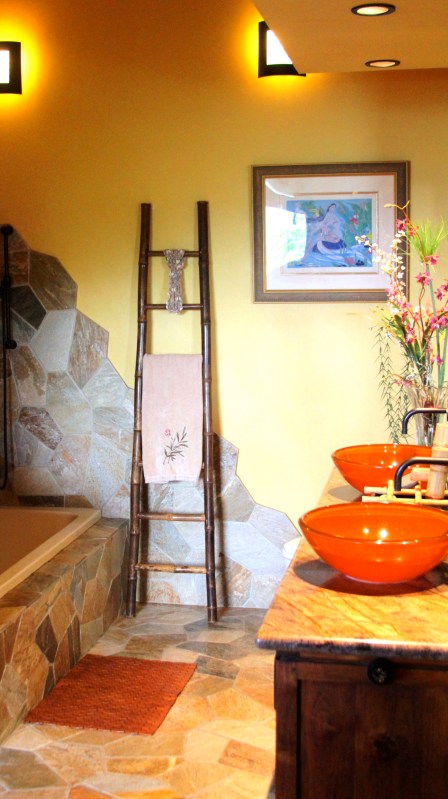 The warm tones and natural finishes carry through in the Master Bath..