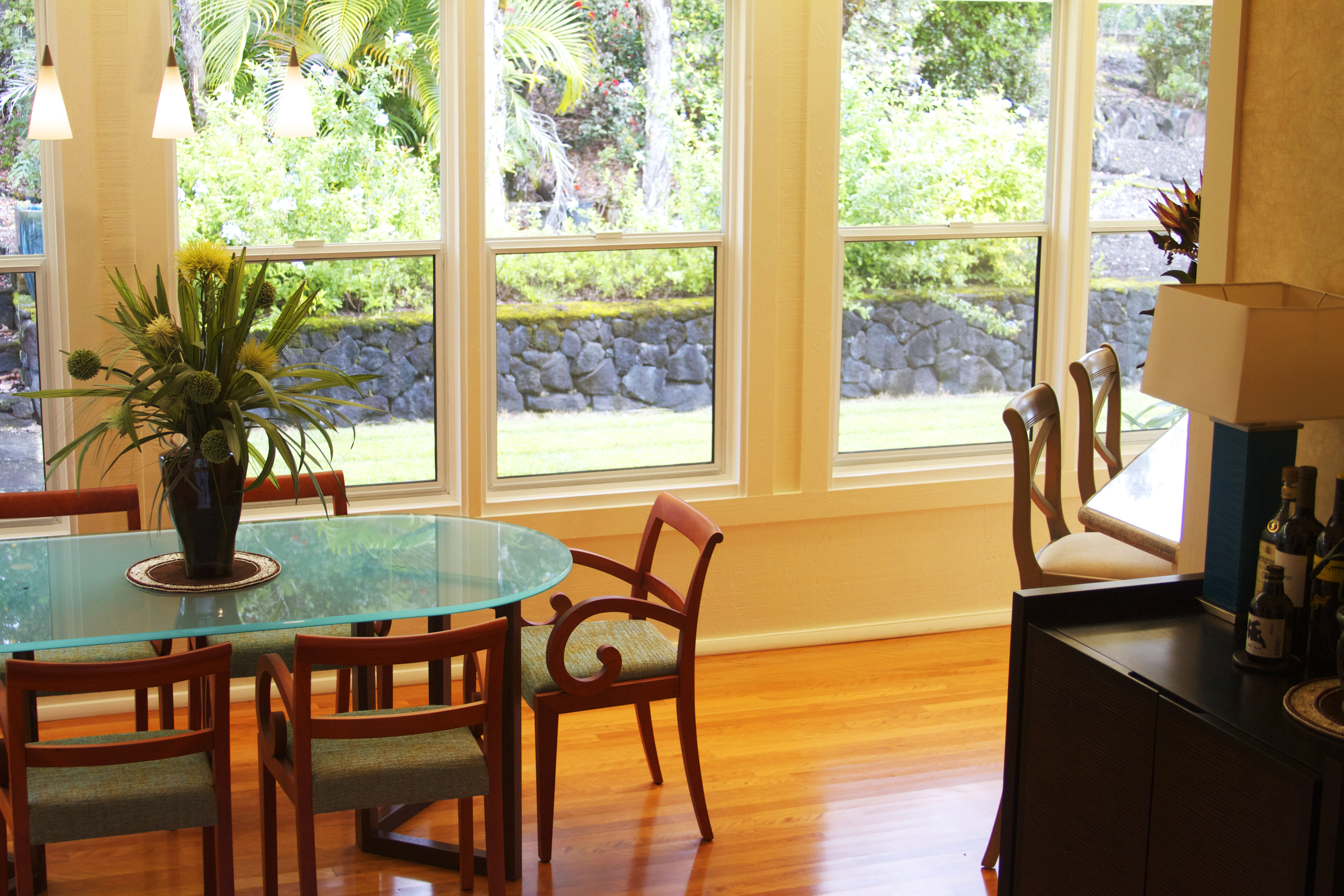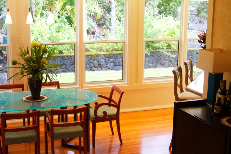 Dining chairs from Italy by Porada. The wood floors are indigenous wood from Hawaii – eucalyptus.