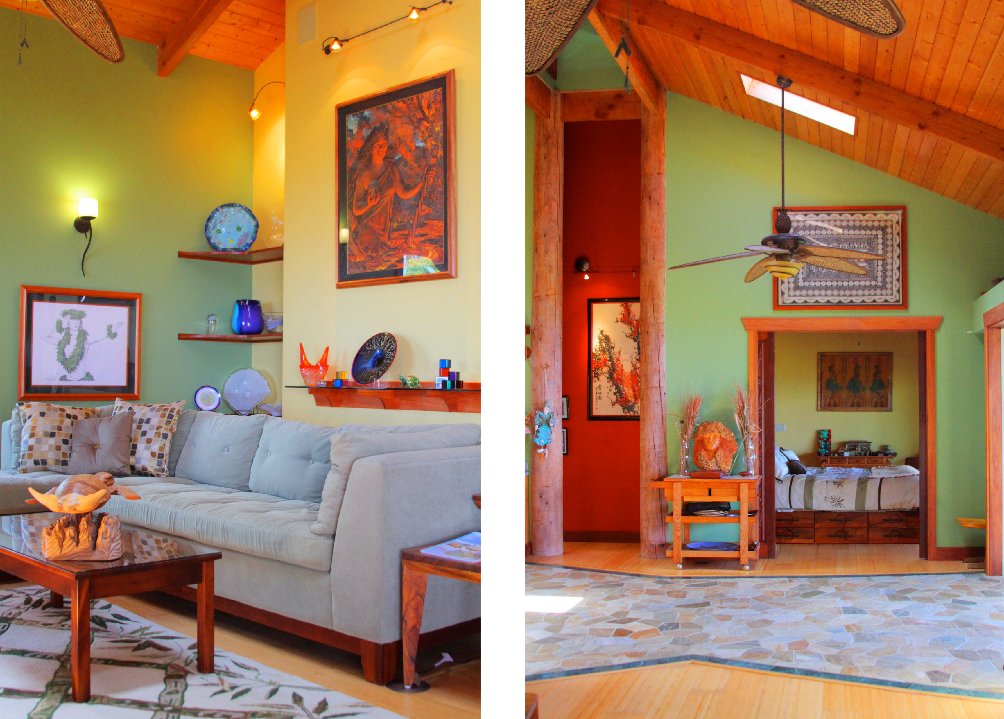 As you view the two areas of the main living space in this montage you see how the strong color palette compliments the natural finish materials.