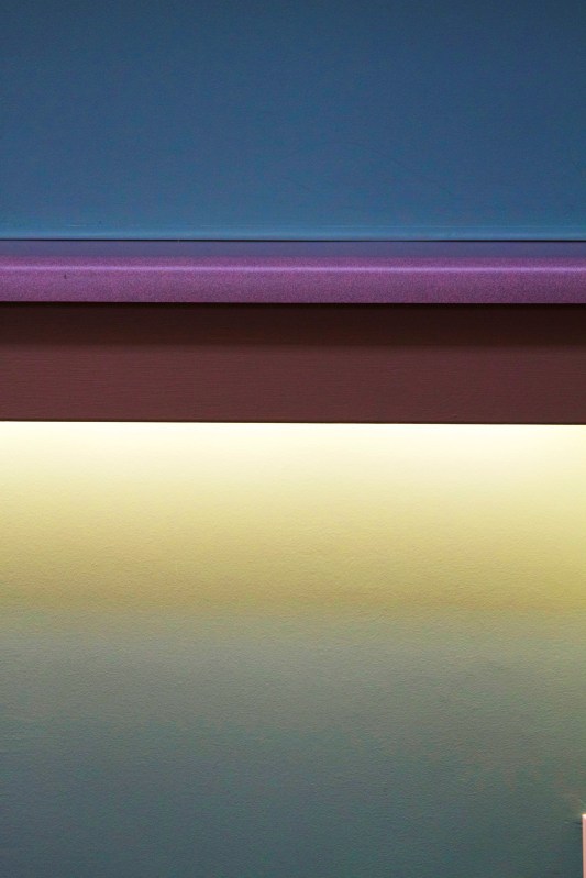Detail of Reception showing contrasting hues of the blue and violet color palette.