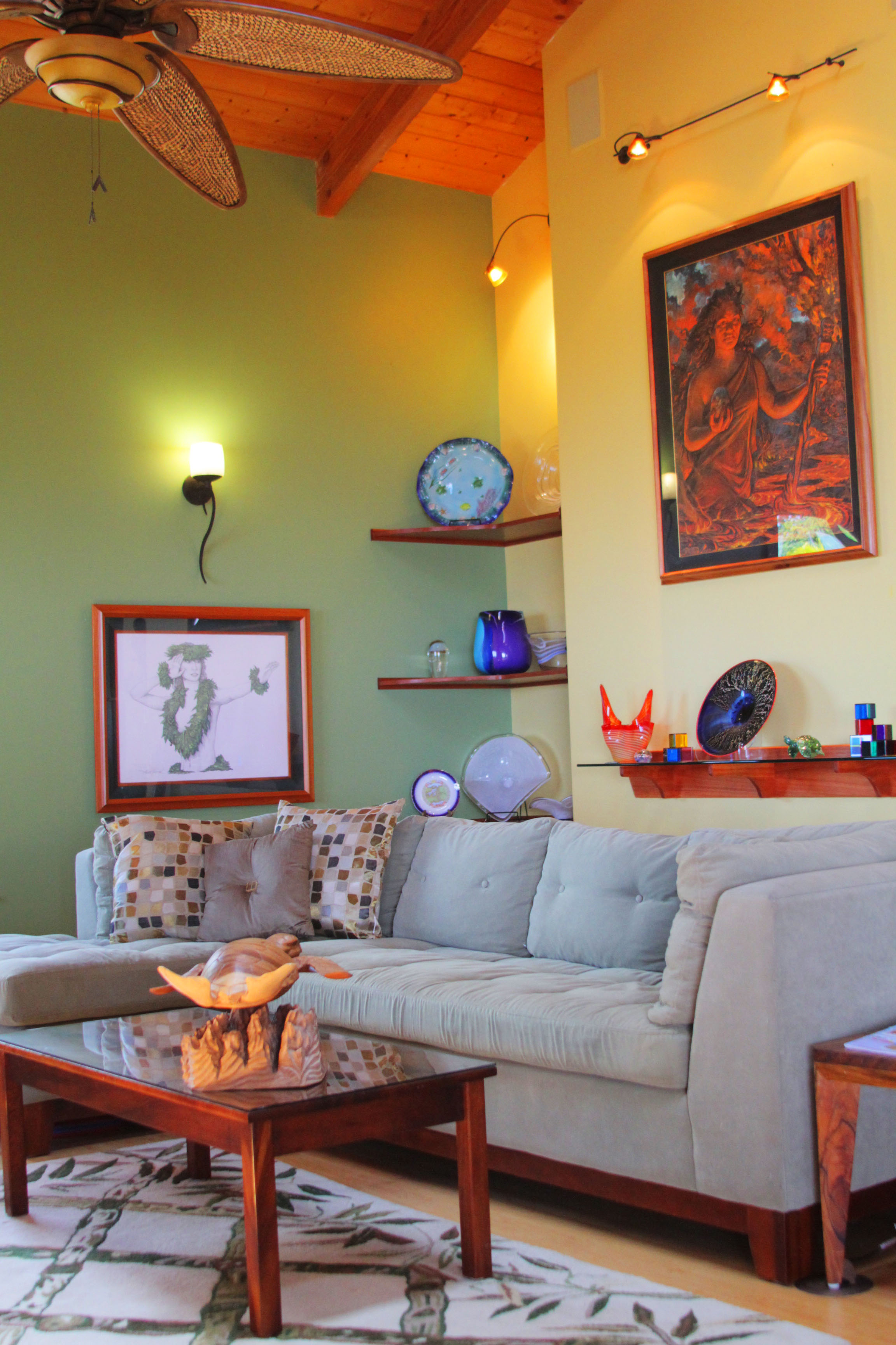 This colorful interior compliments the bright palette of the lush Hawaiian setting.